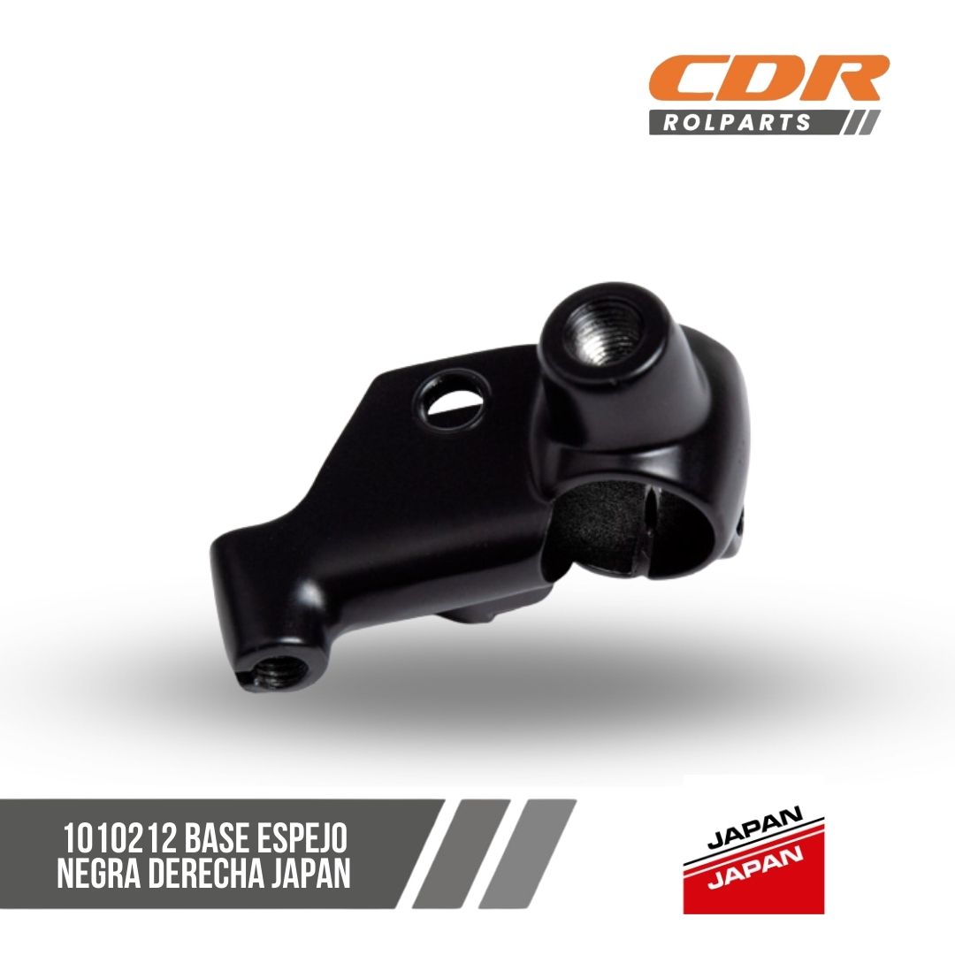 Renueva el look de tu motocicleta con la Base Espejo Negra Derecha Japan 1010212. Fabricada con materiales de alta calidad para garantizar durabilidad y resistencia. Compatible con una amplia gama de modelos. No pierdas la oportunidad de darle un toque único a tu moto con este repuesto premium. ¡Hazlo tuyo hoy mismo!