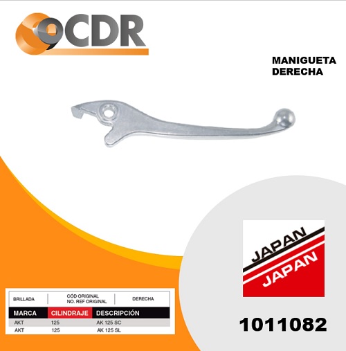 Renueva el estilo de tu moto con la Manigueta Brillada de Japan 1011082. Fabricada con materiales de alta calidad, esta pieza garantiza durabilidad y resistencia. Compatible con una amplia gama de motos , es la elección perfecta para aquellos que buscan calidad y estilo en cada detalle de su vehículo. ¡Haz que tu moto luzca como nueva con esta manigueta brillante!